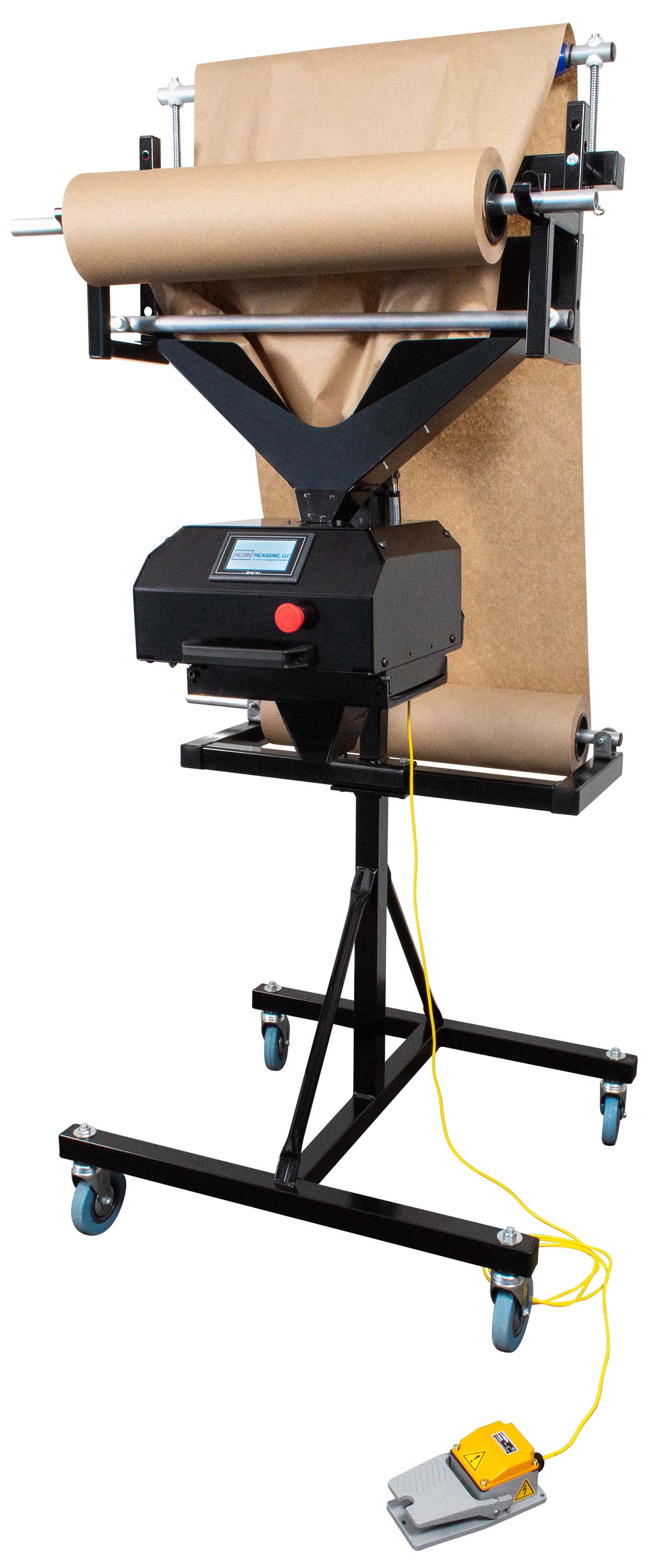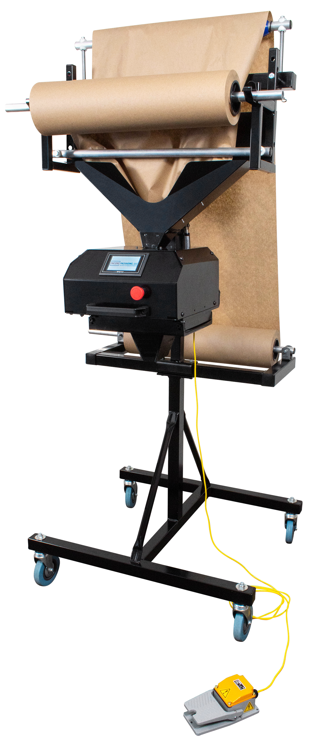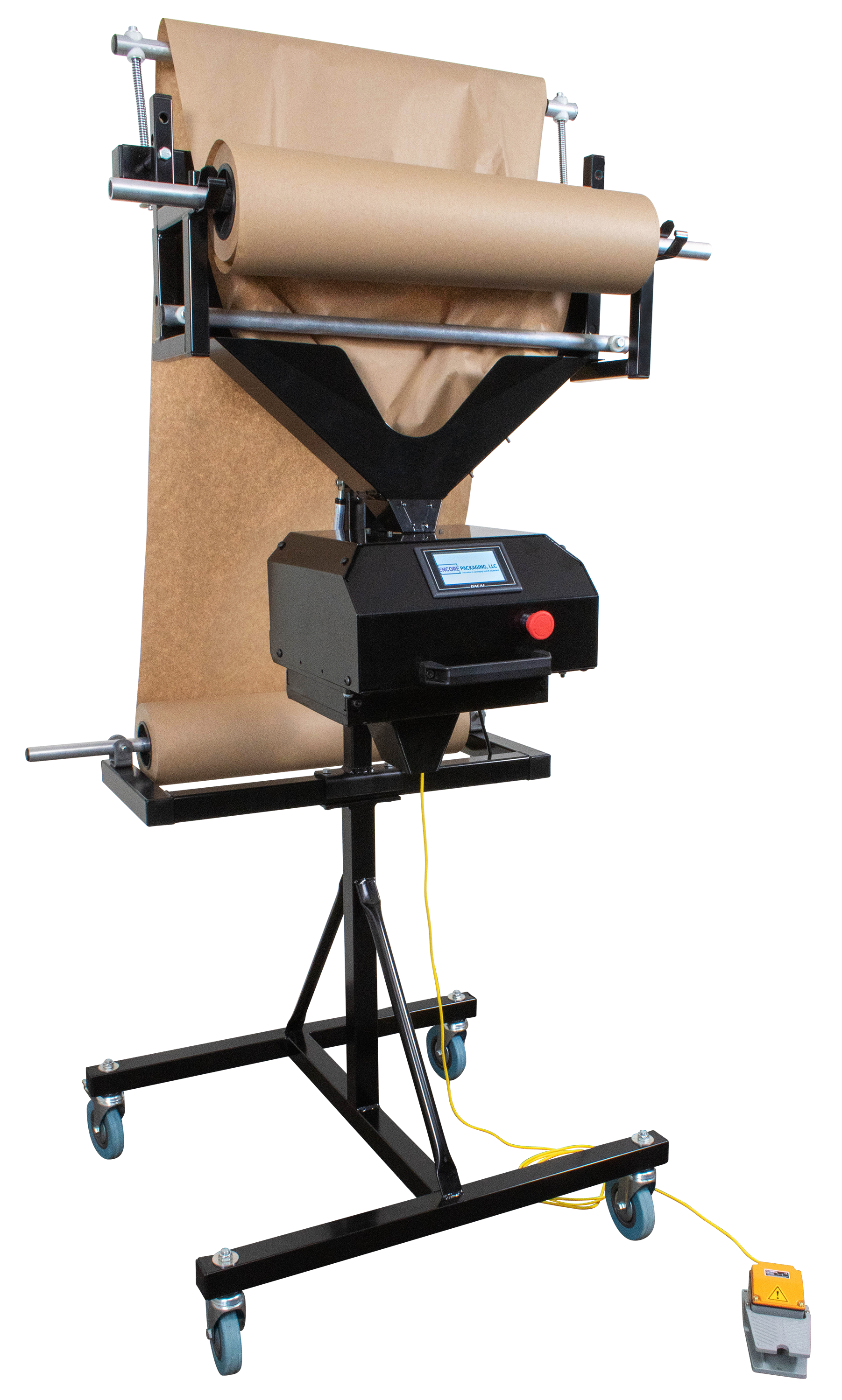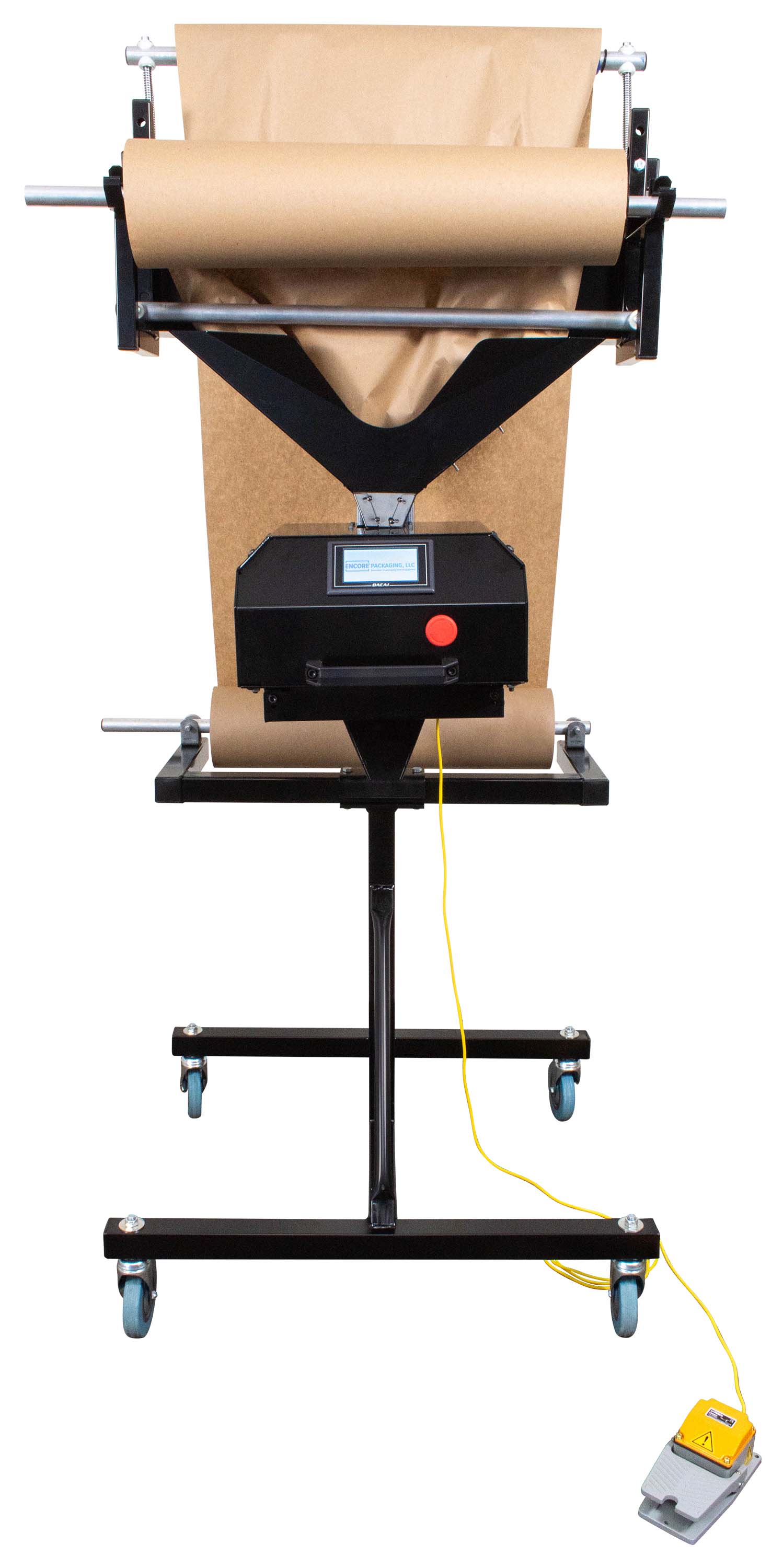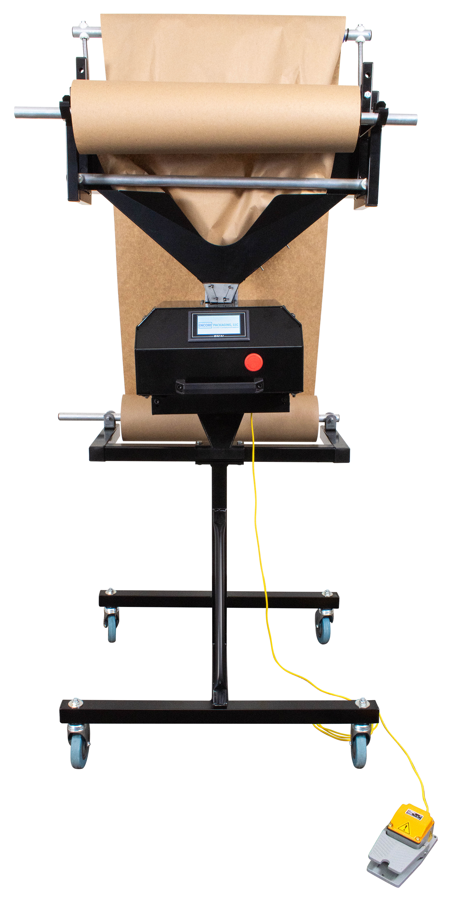 This one-of-a-kind fully automatic kraft paper dispenser features an ergonomic industrial design and is easily angle or height adjustable. Feeds and cuts regular kraft paper dispenser.