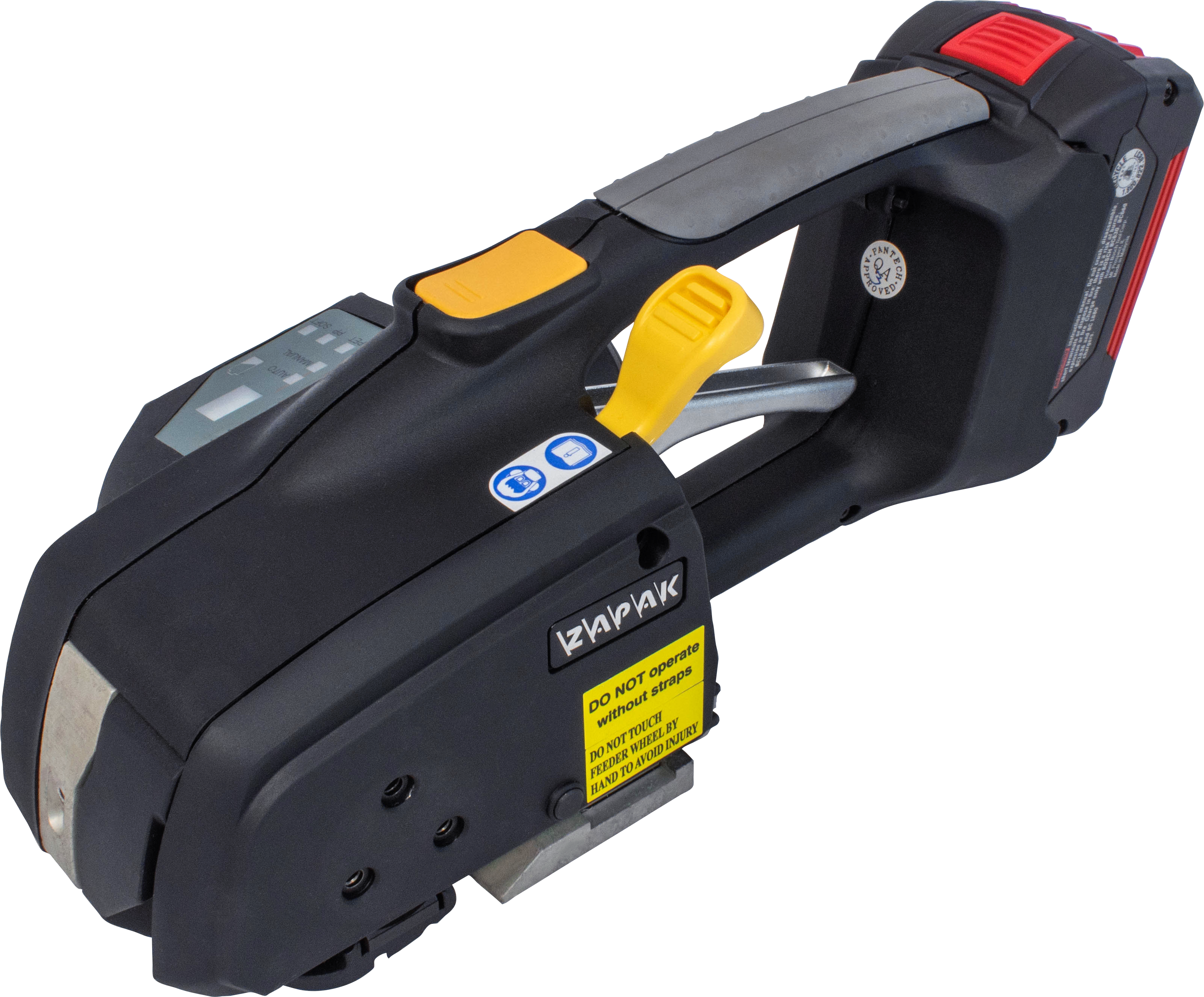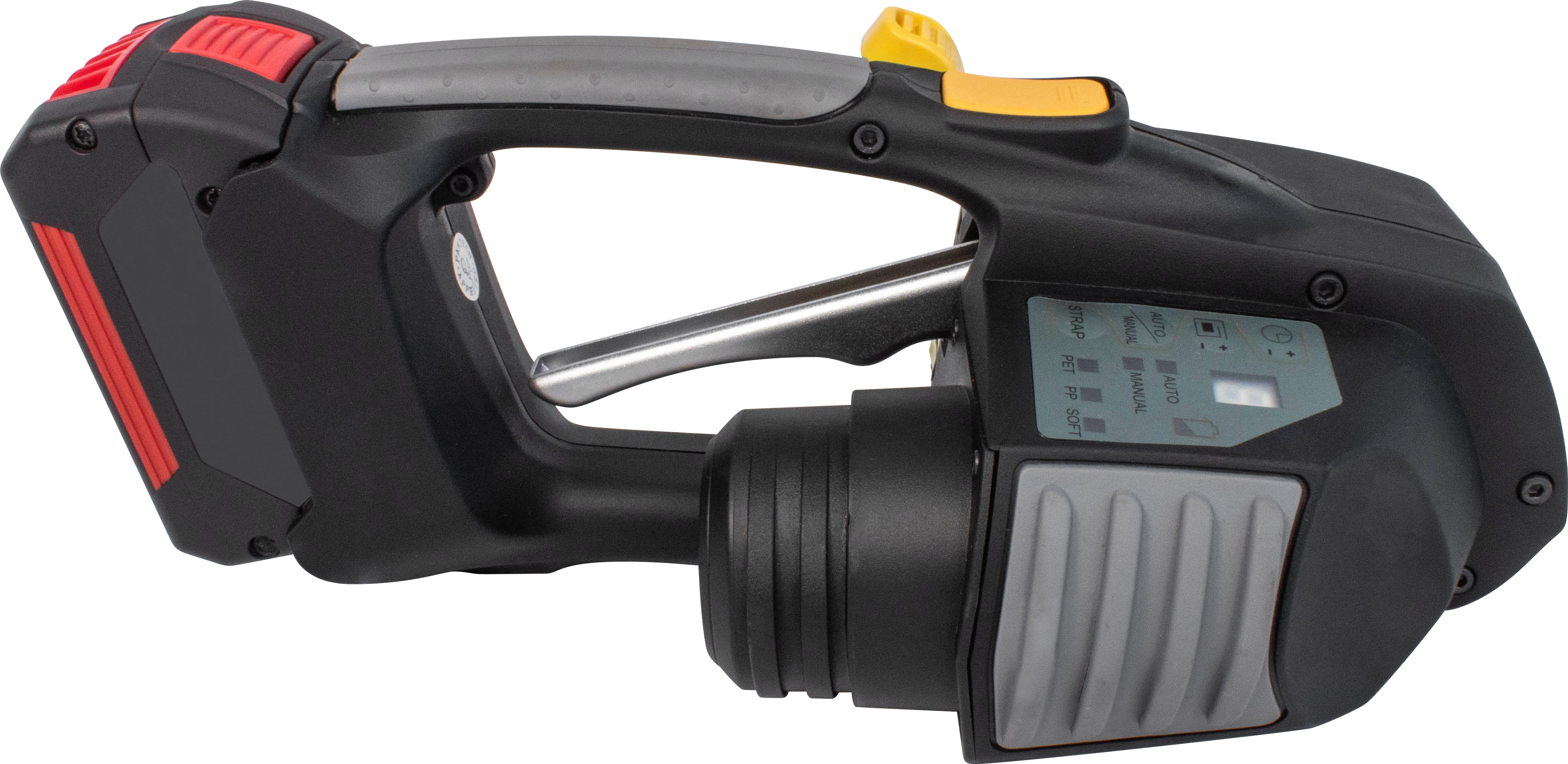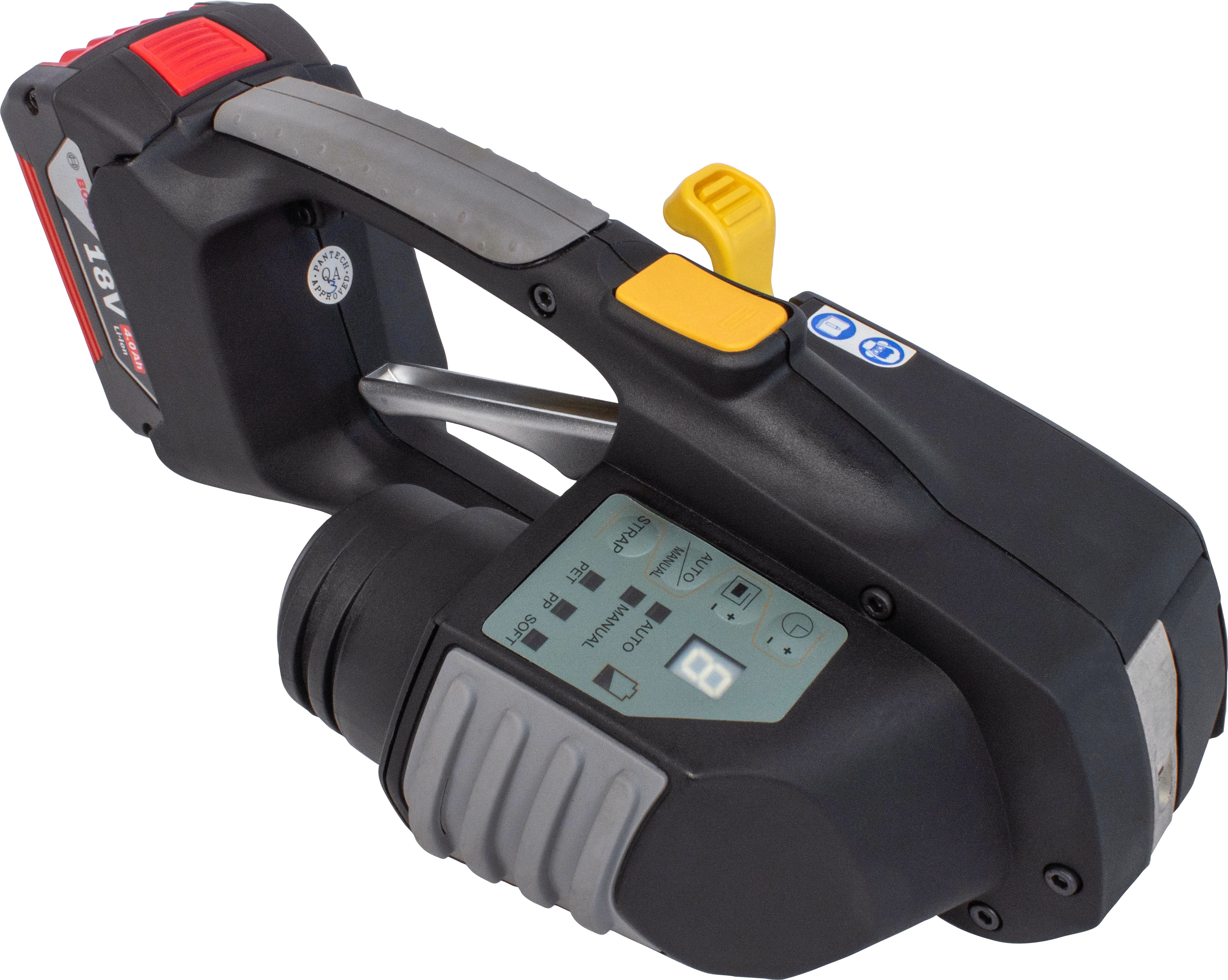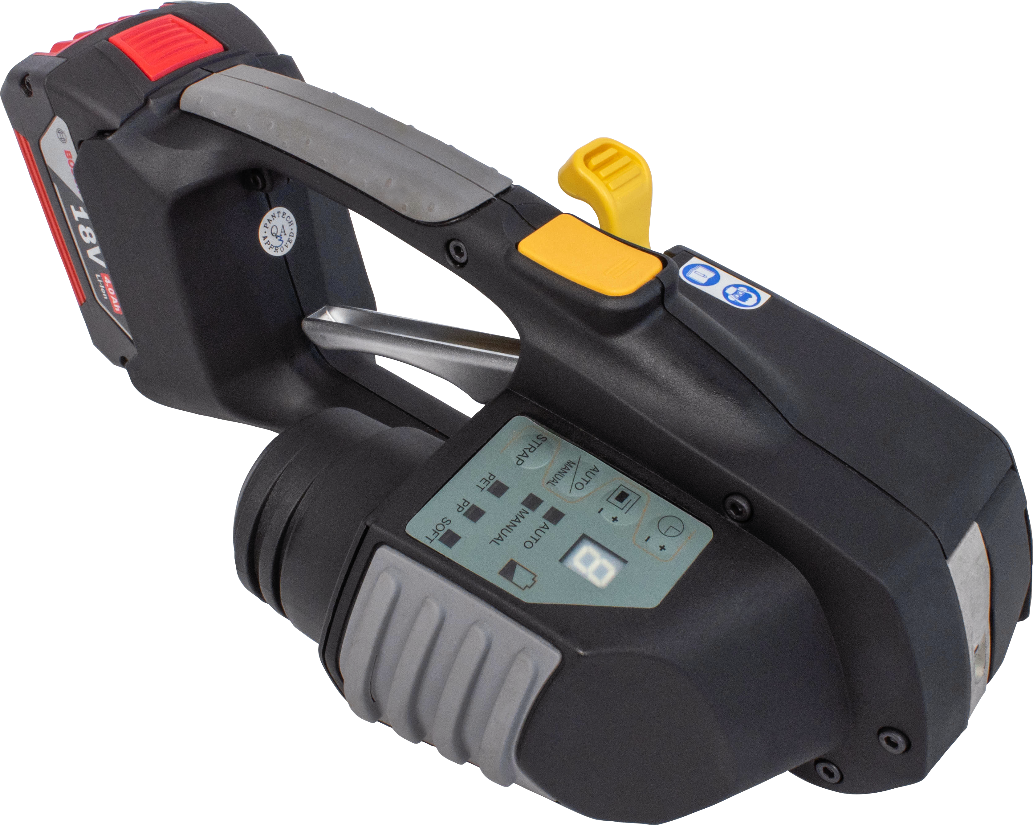 This battery powered tool tensions and seals poly strapping. It features an easy-to-use control panel so you can fine-tune to your desired needs.