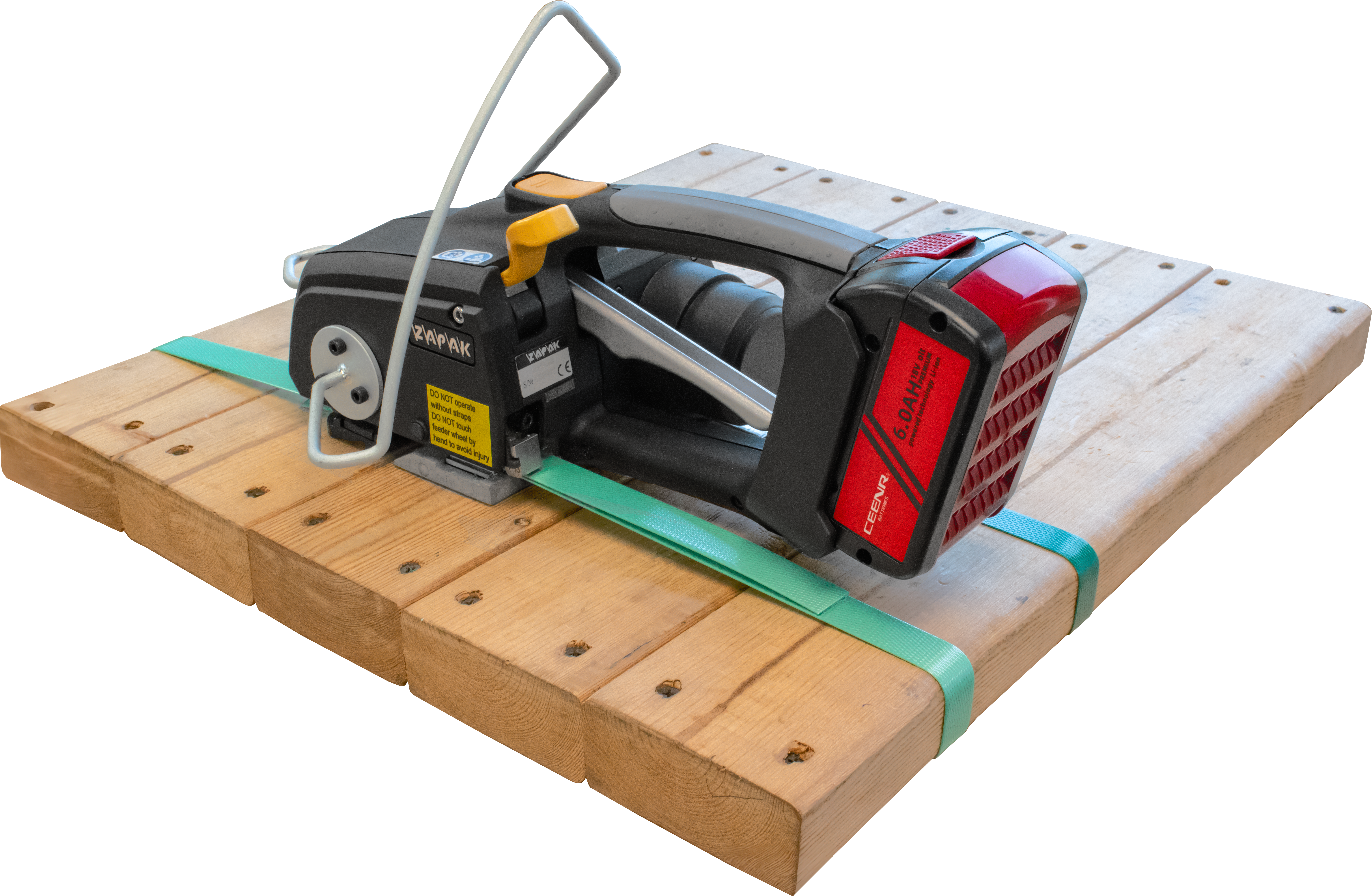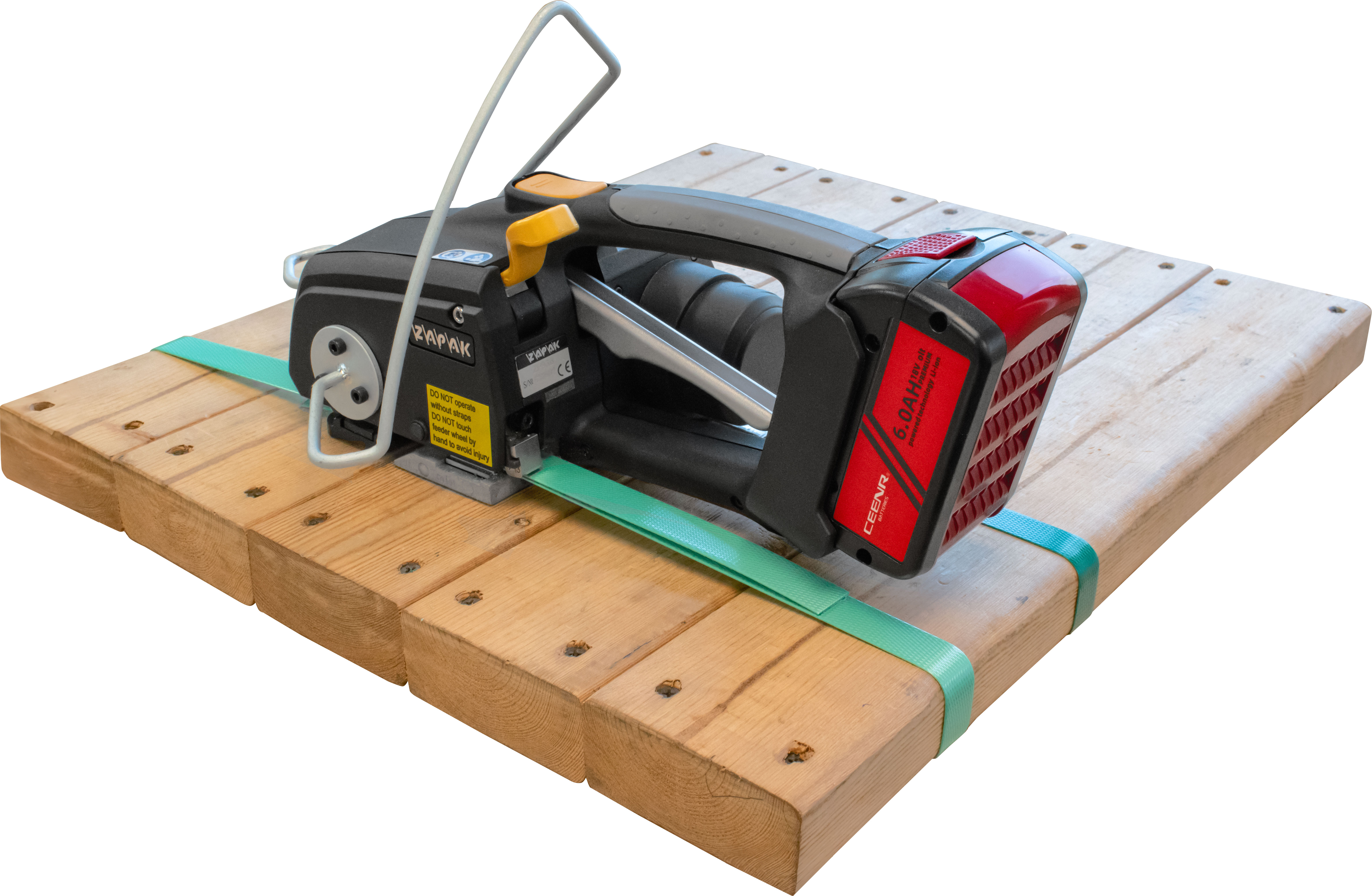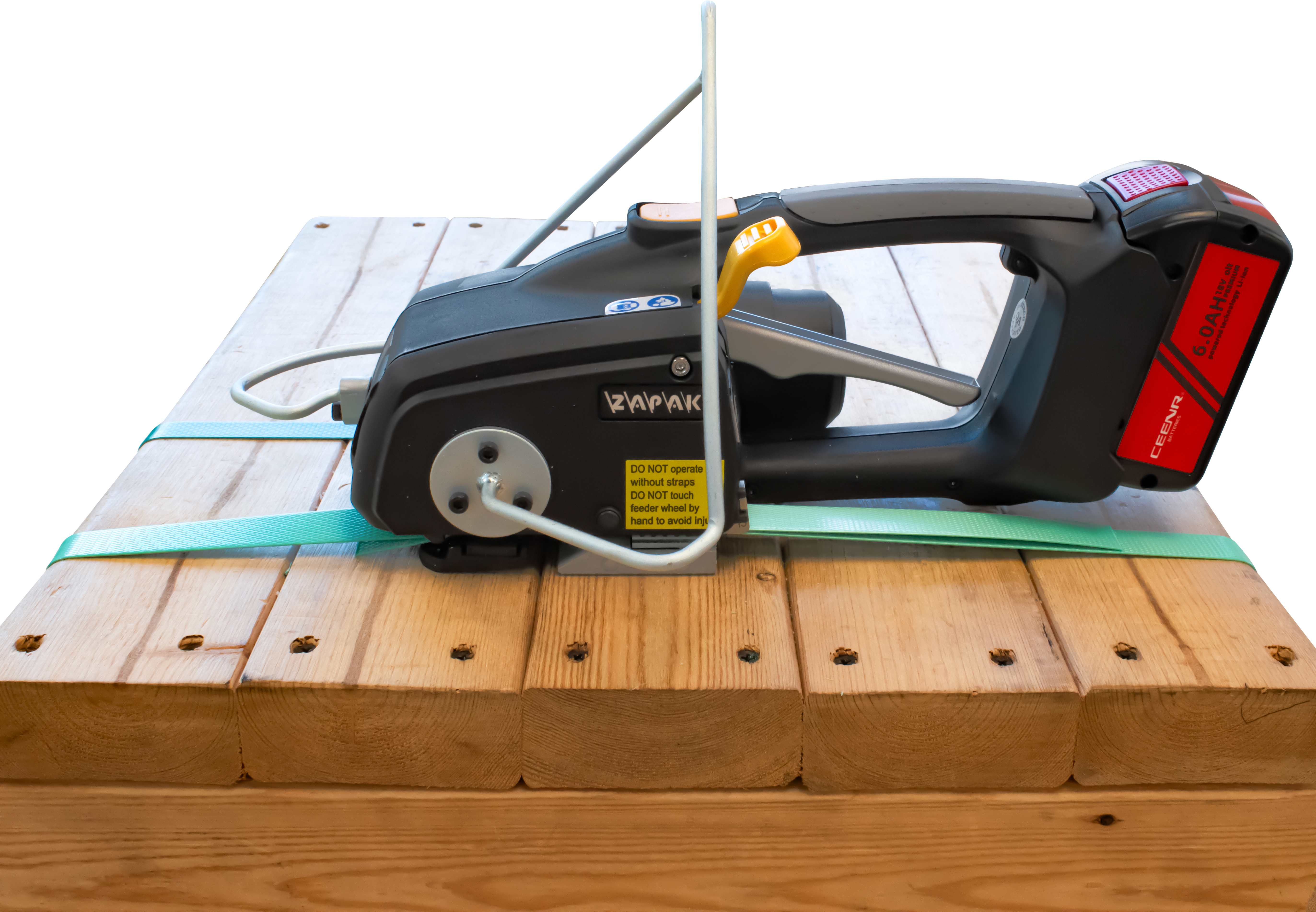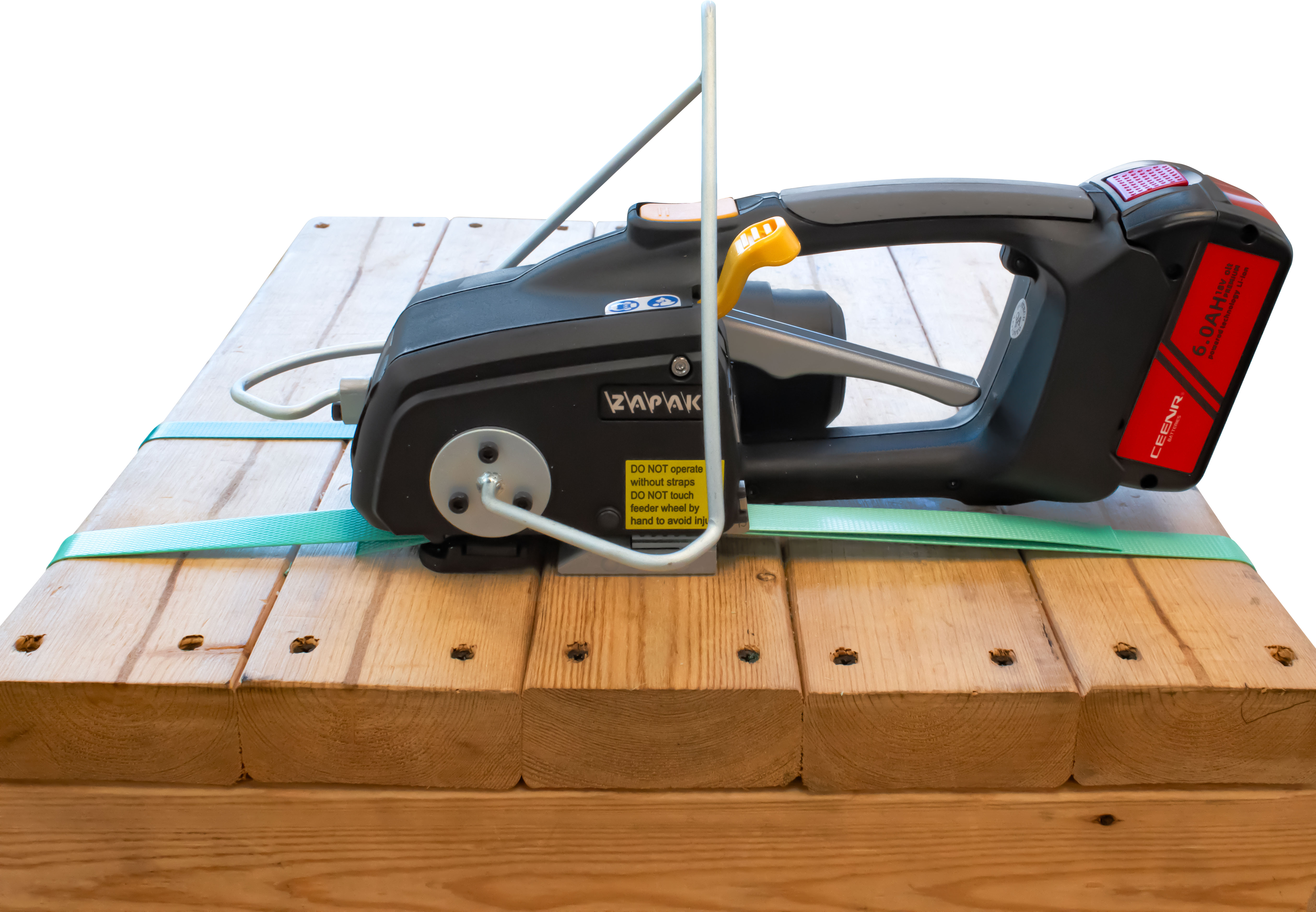 This battery powered tool tensions and seals poly strapping. It features an easy-to-use control panel so you can fine-tune to your desired needs.