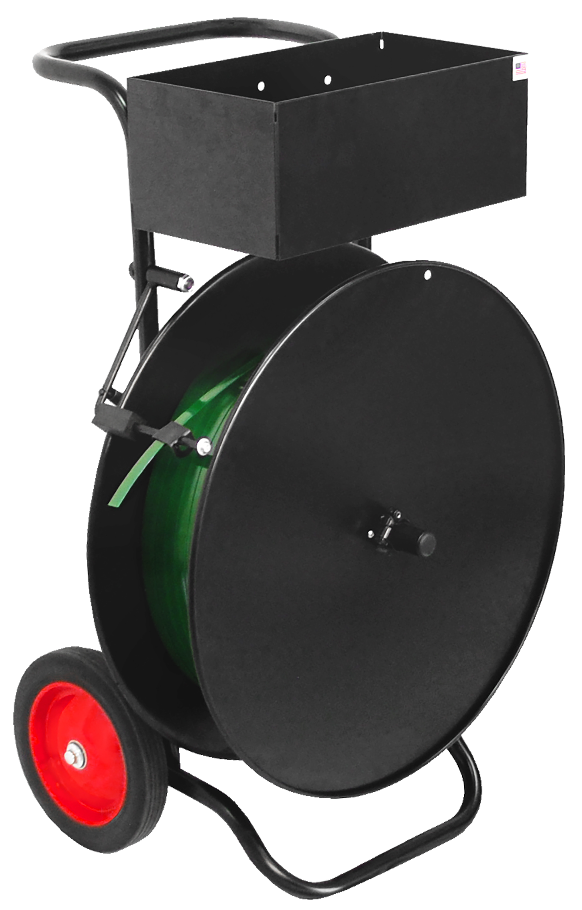 This standard oscillated-wound dispenser has a classic industrial design and features a quick-clamp mechanism for easily loading rolls of steel or poly
