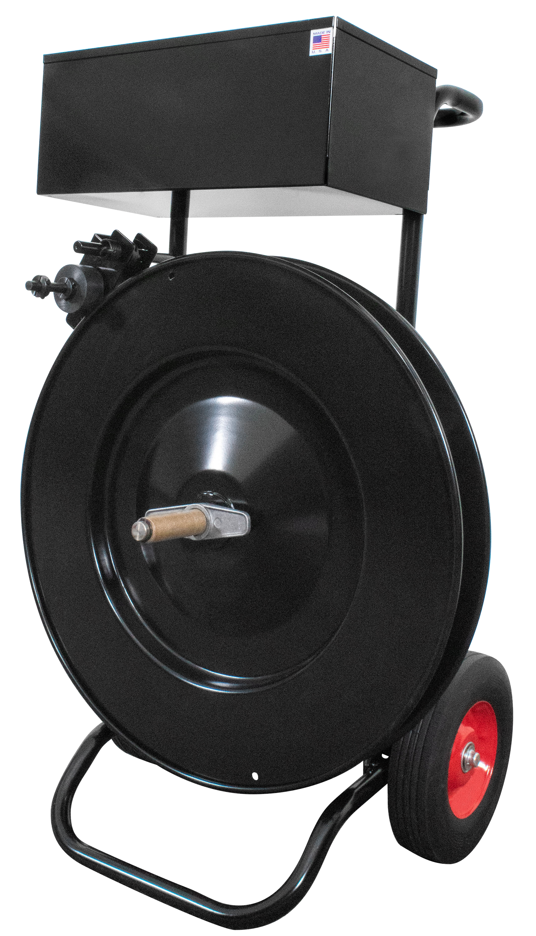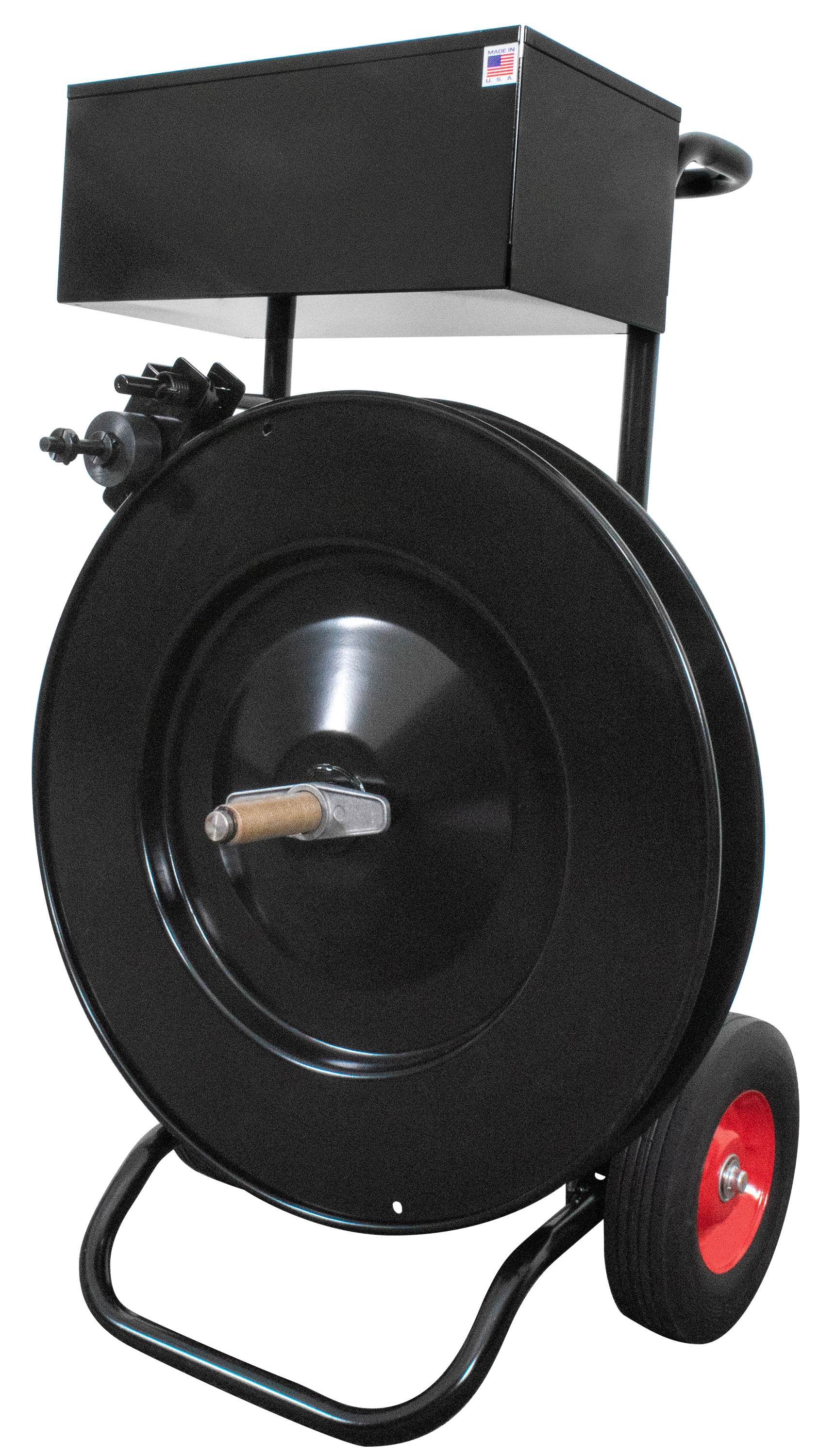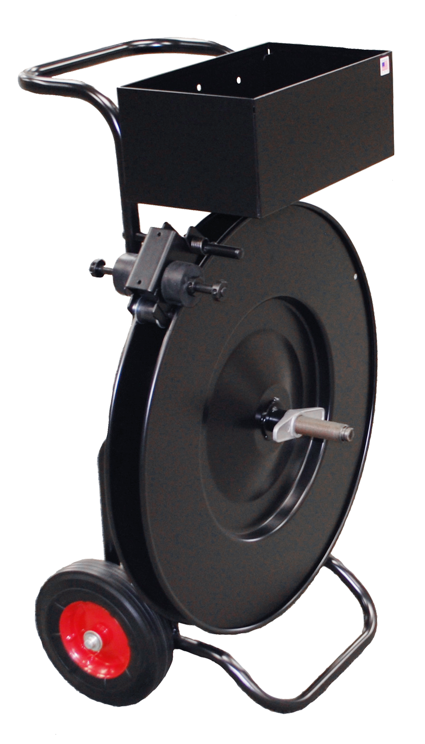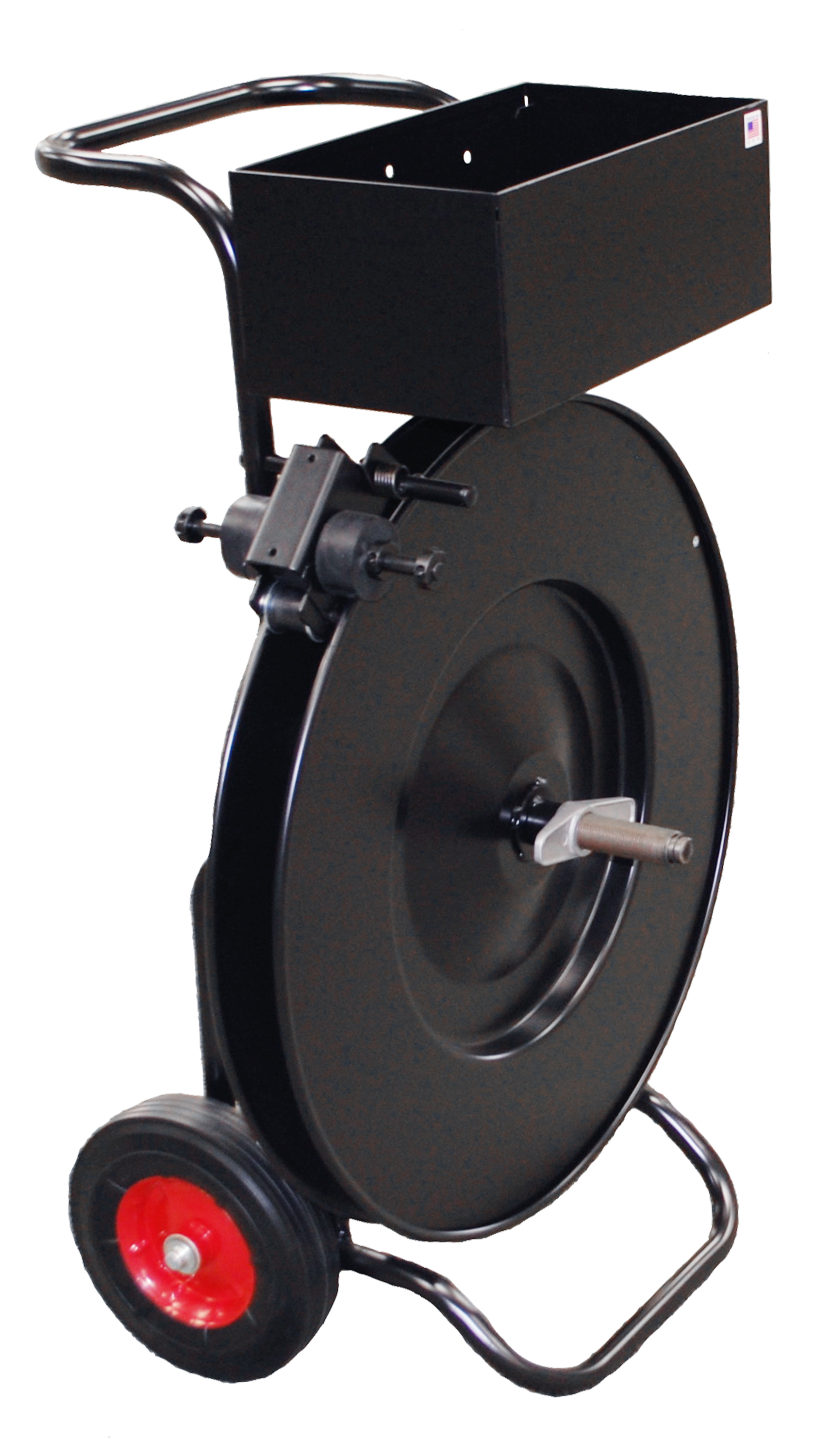 Strap troller allows strap to dispense with ease and acts as a brake mechanism when desired length is reached