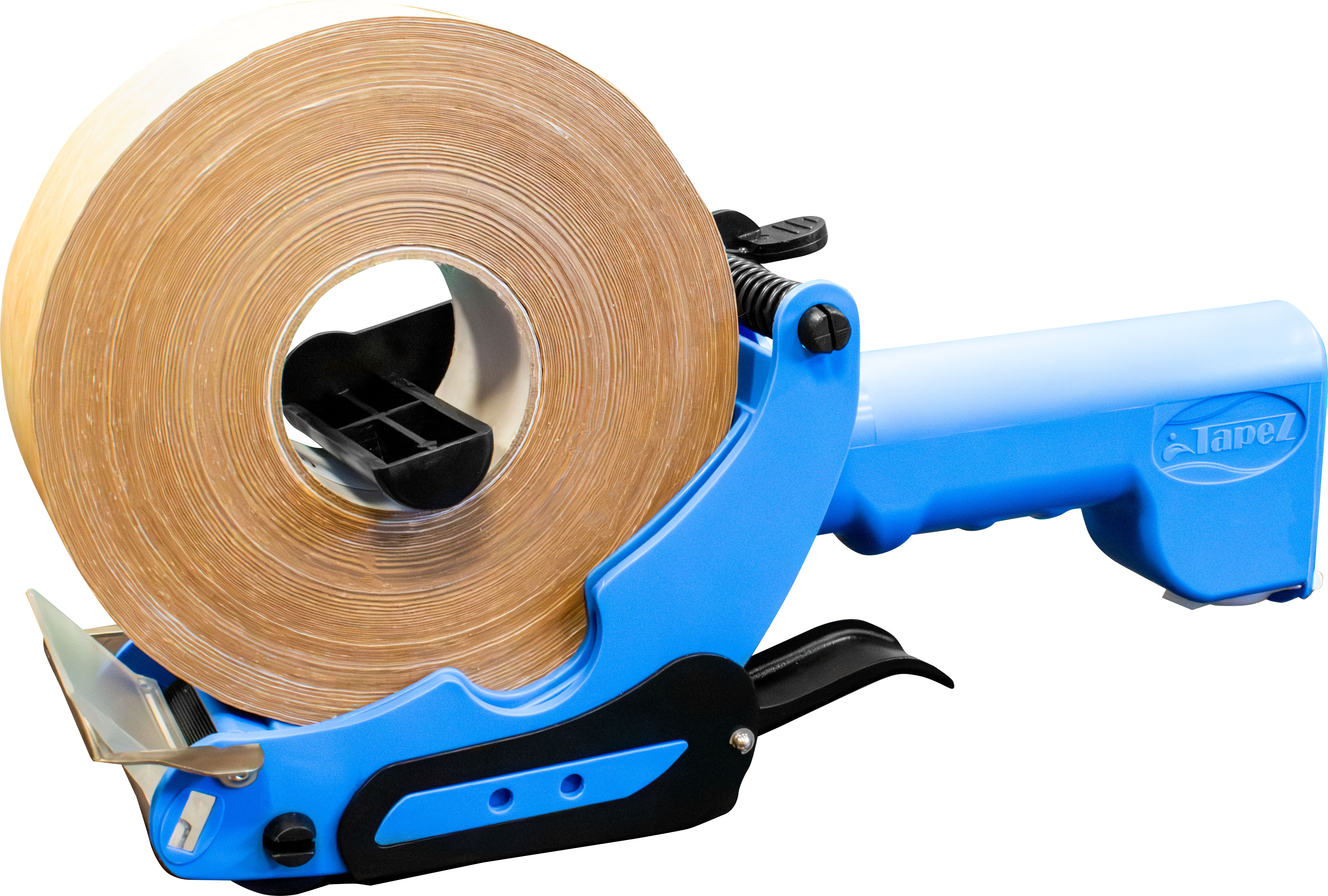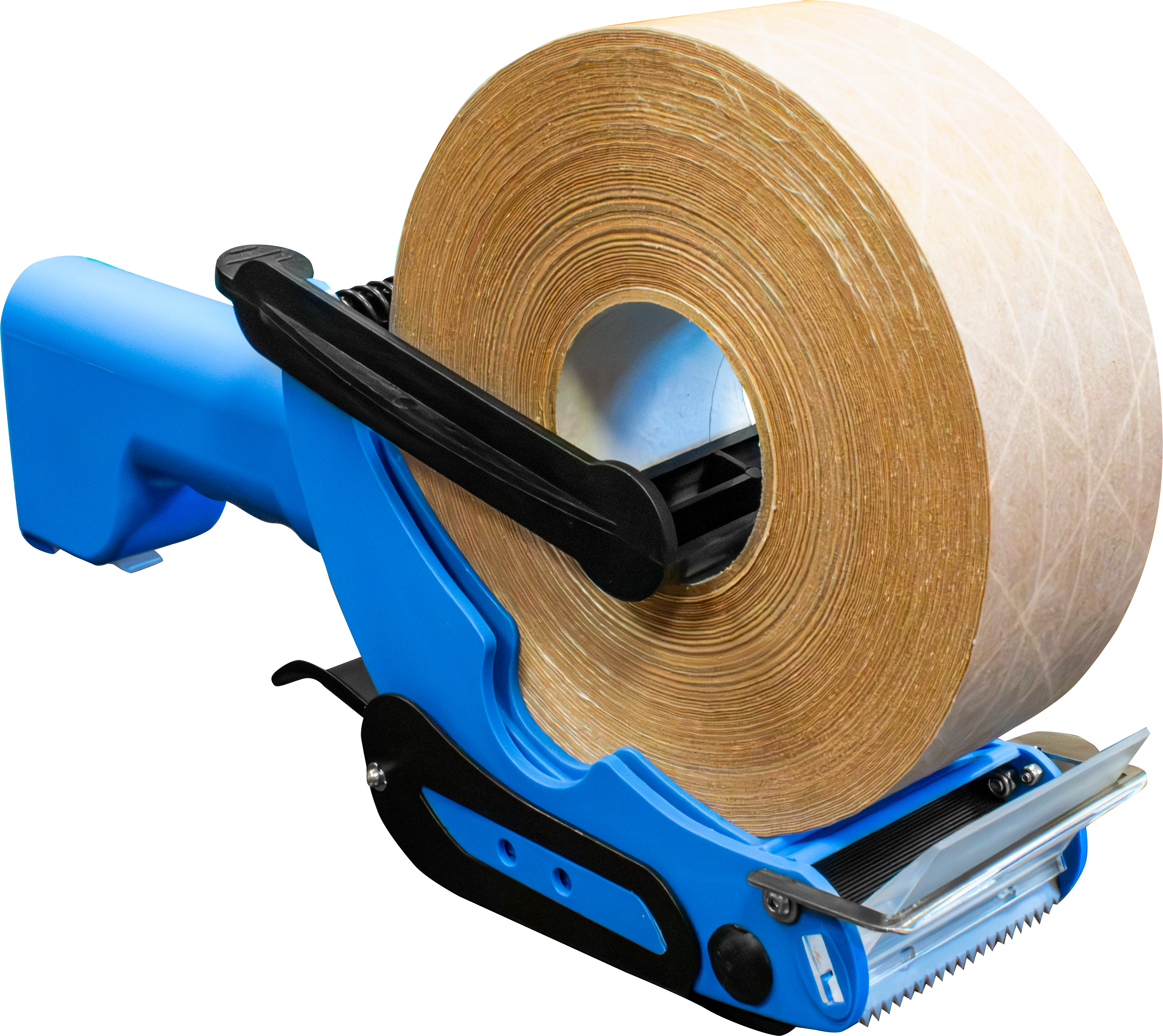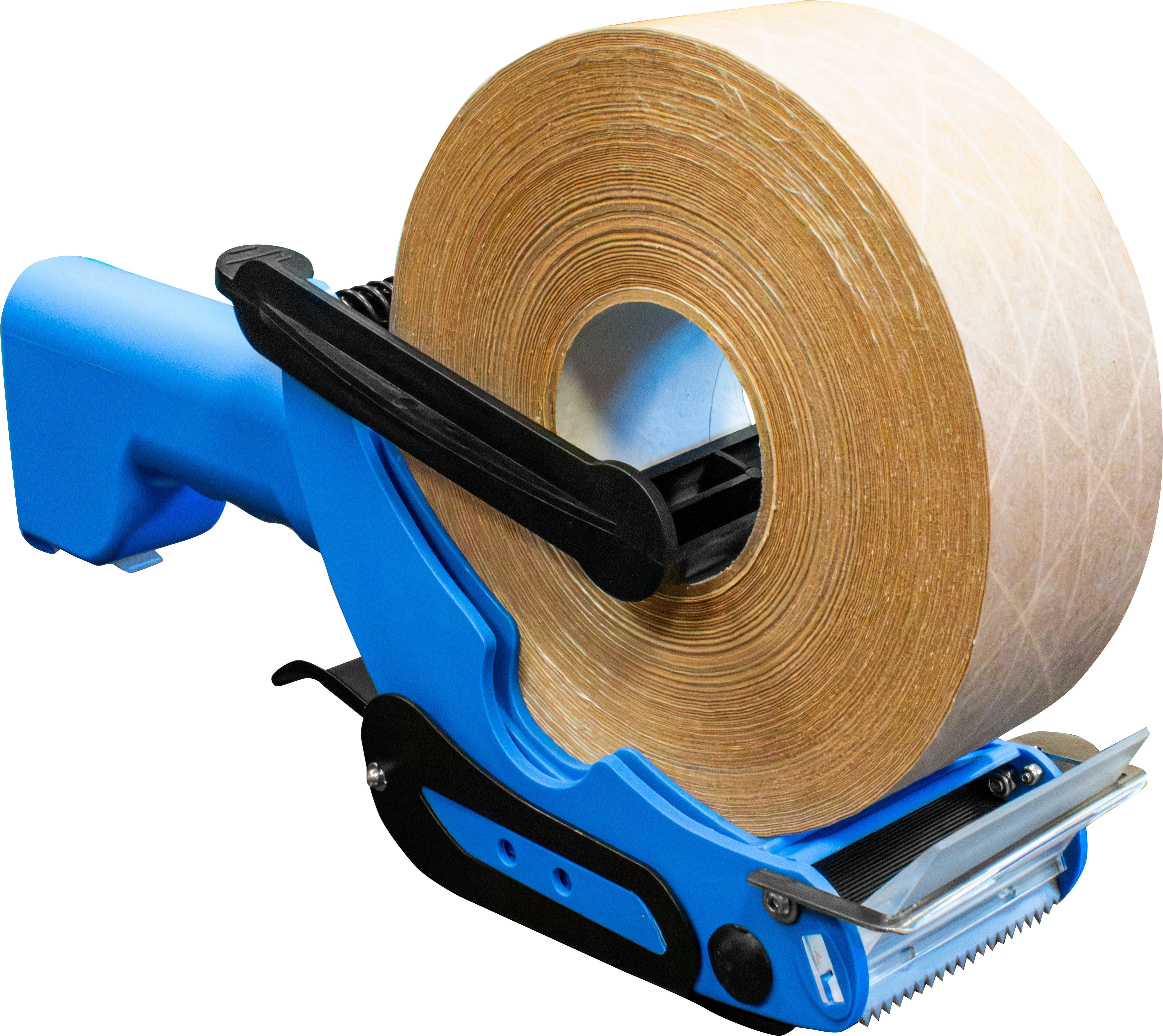 This handheld water-activated kraft paper tape dispenser offers an easy, portable solution - no installation required.